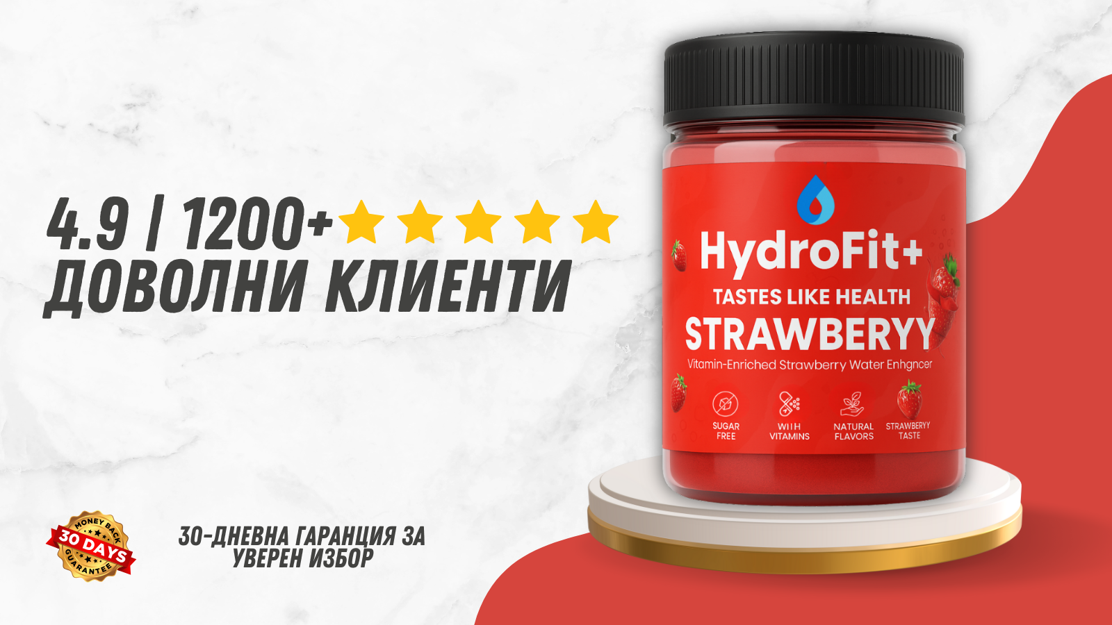 ✅ HydroFit+ превръща обикновената вода в свежа напитка с вкус на ягода – без захар, без изкуствени оцветители и с витамини за повече енергия.